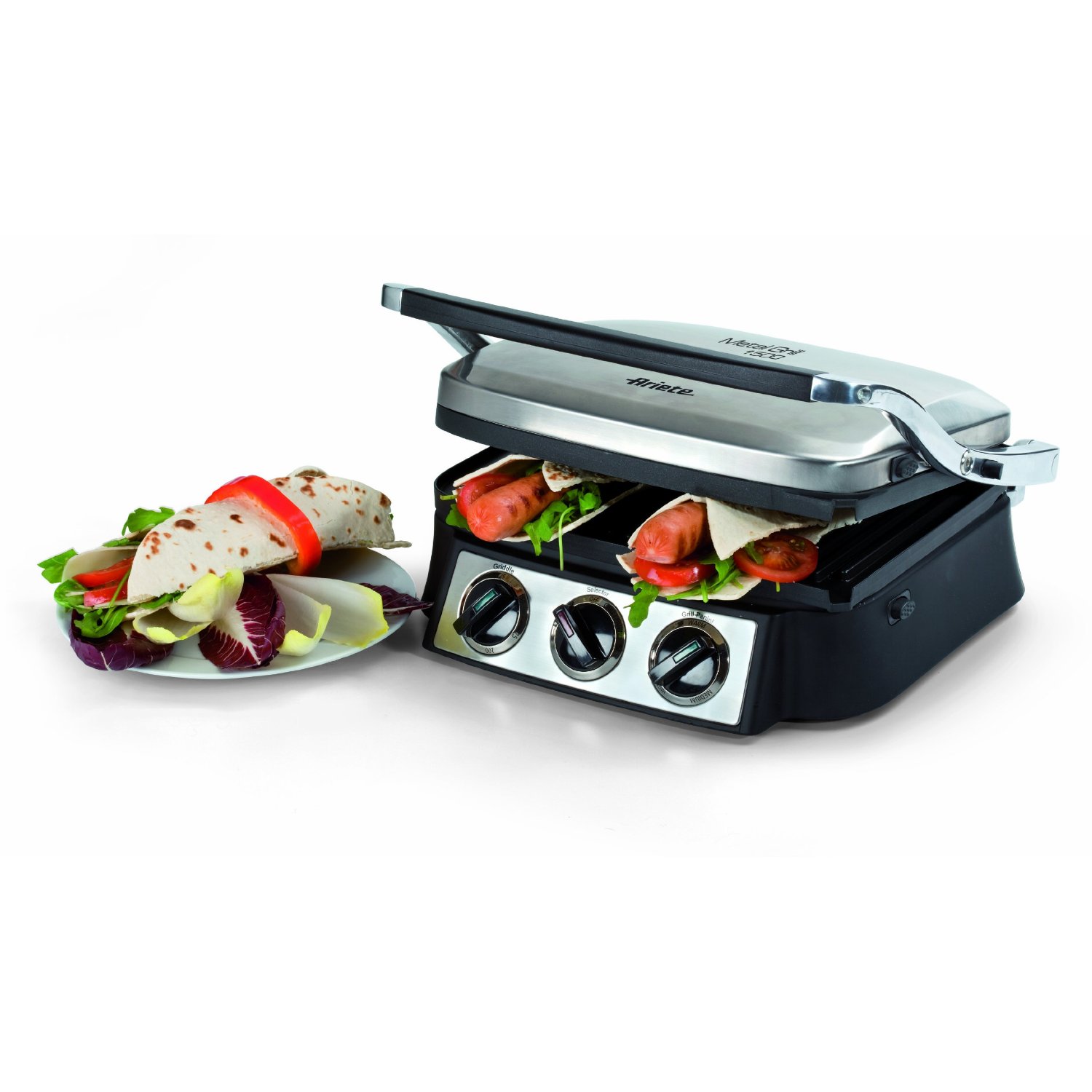 Noch strenger genommen ist die eigentliche Spezialität des Ariete das Überbacken von Paninis und Sandwiches. Er bietet dafür zwei Kochpositionen an, die jeweils über einen gesonderten Thermostat geregelt werden können. Wie den ersten Kundenstimmen zu entnehmen ist, erlauben die beiden Thermostate ein punktgenaues Überbacken und Grillen, zumal die Hitze stufenlos und feinfühlig geregelt werden kann. Die obere Grillplatte wiederum ist beweglich und lässt sich daher der Höhe des Grillguts anpassen.