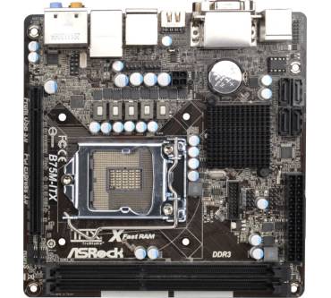 Klein, schwarz, quadratisch – das sind die Charakteristika der ASRock-ITX-Mainboards, die einiges an Ausstattung zu bieten haben. Die zentrale Position nimmt der Intel LAGA1155-Sockel ein, der selbstredend alle Prozessoren der Core-Familie Sandy und Ivy Bridge unterstützt. Dabei muss man nicht auf die Unterstützung von HyperThreading verzichten und auch die Turbo-Boost-Funktion ist im Chipsatz aktiviert. Die Stromversorgung erfolgt digital mit 4 + 2 Phasen und wird von hochwertigen japanischen Kondensatoren unterstützt, die auch einiges an Übertaktung aushalten. Dass der B75-Chipsatz nur einen PCI-Express-Slot 3.0 mit 16 Lanes unterstützt, ist natürlich auf einem kleinen Mainboard kein Nachteil, da von Hause aus nur ein Erweiterungs-Slot zur Verfügung steht. Die beiden DIMM-Bänke dürfen mit maximal 16 GByte bestückt werden, wobei OC-Geschwindigkeiten bis 2.200 MHz zulässig sind.