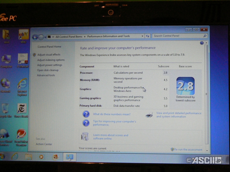 Die üppige Speicherkapazität empfiehlt sich in erster Linie für Anwender, die mit dem Netbook nicht nur im Netz surfen, sondern auch eine Vielzahl an Office- und E-Mail-Dokumenten bearbeiten und sichern möchten. Für den Antrieb des Eee PC sorgt ein AMD C-50, der über zwei Kerne verfügt und mit einem GHz rechnet. Der Arbeitsspeicher entspricht mit einem GByte RAM ebenfalls den zur Zeit üblichen Standards. In Sachen Grafiklösung setzt der Hersteller auf eine integrierte AMD Radeon HD 6250, mit der sich die üblichen Netbook-Anwendungen (HD-Videos, Präsentationen) ohne Probleme bewältigen lassen. Selbst einfache Spiele sollten mit dem Chip möglich sein. Wichtiger ist ohnehin die Akkulaufzeit, wobei der Hersteller bisher leider noch nicht verraten hat, wie lange das Netbook im Außeneinsatz tatsächlich durchhalten soll. Sicher ist nur, dass der 10,1 Zoll große Bildschirm mit 1.024 x 600 Bildpunkten auflöst und zudem mit einer entspiegelten Oberfläche ausgestattet ist. Auch bei ungünstigen Lichtverhältnissen sollte man folglich gut arbeiten können. In Puncto Schnittstellen darf man sich über einen HDMI-Anschluss freuen, außerdem stehen mehrere USB-Ports zur Verfügung. Via Bluetooth können darüber hinaus kompatible Peripheriegeräte (Maus, Drucker) drahtlos an das Netbook angeschlossen werden. Die Verbindung zum Netzwerk erfolgt abschließend über das integrierte WLAN-Modul.
