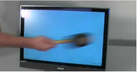 Wer daran gezweifelt hat, ob der Asus LS221H tatsächlich so robust ist, wie der Hersteller verspricht, kann sich nach einem Kurztest von Netzwelt.de nun sicher fühlen – zumindest was das Malträtieren des Monitors mit einem Gummihammer betrifft. Denn im Gegensatz zu den doch eher zaghaften Schlägen, mit denen der Monitor auf der offiziellen Asus-Promotion-Tour getestet wurde (Video bei Toms Hardware), haben die Redakteure von Netzwelt recht kräftig zugeschlagen, wie das Video auf der Homepage demonstriert. Eindeutiges Fazit: Kinderzimmertauglich.