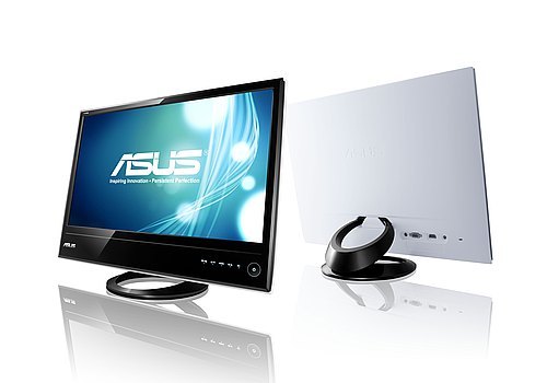 Zu beobachten ist jedenfalls, das Asus wieder verstärkt auf einen klassischen Standfuß als Halterung setzt und den wie überdimensionierte Bilderrahmen ebenerdig aufgestellten Monitoren (wie zum Beispiel beim MS238H praktiziert) den Rücken zukehrt. Der ML238H jedenfalls präsentiert sich mit einem originellen Standfuß, der den Bildschirm an der hinteren Seite wie mit zwei Krabbenscheren in Form hält (Asus selbst beschreibt die Greifarme mit dem Adjektiv „mondförmig“), die wiederum aus einer – so der Hersteller – stabilen, ringförmigen Standplatte herausragen. Das Design ist darüber hinaus funktional mehrwertig. Der Neigungswinkel soll sich mit nur einem leichten Schubser verstellen lassen, zusätzlich dazu kann der Bildschirm um 20 Grad (immerhin) nach rechts und links gedreht werden. Eine ergonomisch sinnvolle Höhenverstellung ist allerdings mit der Ergo-Fit II genannten Standfußtechnologie nicht drin.