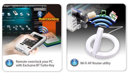 Deluxe im wahrsten Sinne des Wortes bietet auch die restliche Ausstattung an. Angefangen beim BT Go 3.0-Modul, das die ATX-Blende mit WLAN und Bluetooth versorgt, damit der Nutzer ganz bequem Daten zwischen seinem PC und den mobilen Geräten austauschen und synchronisieren kann. Die mitgelieferte Antenne sorgt für eine bessere Signalstärke und ermöglicht es, die Mobilgeräte als Fernsteuerung zu benutzen. Eine spezielle Asus-Oberfläche dient dann der Steuerung, die beispielsweise zum Übertakten benutzt werden kann. Das mausgesteuerte UEFI-BIOS zeigt im EZ-Modus, der über den Kurzbefehl F3 aufgerufen werden kann, alle häufig genutzten Einstellungen an. Mit F12 lässt sich ein Screenshot der BIOS-Einstellungen machen, um Konfigurationsprobleme durch Dritte lösen zu lassen. Eine weiter neue Funktion besteht in einem Speichertest, der schadhafte RAM-Module erkennt – sehr hilfreich bei Bootproblemen und PC-Abstürzen. Zum schnellen Flashen des BIOS-Chips kann ein USB-Stick genutzt werden, wobei der PC lediglich mit einem Stromkabel verbunden sein muss.