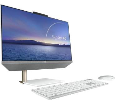 Der Zen AiO F5401 ist in verschiedenen Ausstattungsvarianten erhältlich, die sich allesamt im Preisbereich um 1.000 Euro herum bewegen. Es handelt sich um einen All-in-One-PC mit kompaktem 24-Zoll-Display, der vor allem für designbewusste Privatanwender:innen gedacht ist. Die moderne Optik ist auf jeden Fall Geschmackssache. Beim Display erwartet Sie hier ein Standard-IPS-Display mit guter Schärfe, aber geringer Leuchtkraft, das optional auch als Touchscreen zu haben ist, was aber wiederum wegen der reflektiven Oberfläche noch größere Einschränkungen bei der Ablesbarkeit bei Tageslicht mit sich bringt. Unterhalb des Displays prangt ein Stereo-Lautsprechersystem von harman/kardon, das für gute Entertainmentqualitäten sorgen kann. Ebenfalls auf hohem Niveau bewegt sich die Rechenleistung: Die Ryzen-Prozessoren, gepaart mit reichlich Arbeitsspeicher und flotten M.2-Festplatten, sorgen für ein hohes Arbeitstempo im Alltag und auch bei anspruchsvolleren Anwendungen. Gamer bleiben allerdings außen vor, denn es fehlen dedizierte Grafiklösungen.