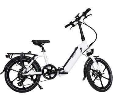 Zum Aufladen können Sie den Akku auch herausnehmen. Eine Ladestandsanzeige gibt Ihnen Auskunft darüber, wann dies nötig wird. Für die nötige Sicherheit sorgen die LED-Frontleuchte, das Rücklicht und die Schwalbe-Reifen mit Reflektorstreifen. Ein Gepäckträger samt Spanngurt ist vormontiert, das zulässige Gesamtgewicht des Rades beträgt 100 kg. Gabeldämpfung und gefederte Sattelstütze erhöhen den Fahrkomfort. Das Magazin ElektroBIKE 01/2022 wertet in seinem Test den tüchtigen Antrieb als positiv. Ein Minuspunkt ist, dass der Schließmechanismus im zusammengefalteten Zustand nicht einrastet.
