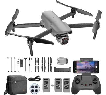 Die Evo Lite+ bringt trotz ihres Namens mit rund 835 Gramm einiges an Gewicht auf die Waage, erreicht damit aber eine hohe Flugstabilität. Der Preis für diese Drohne ist ebenfalls hoch, aber dafür liefert die Kamera auch hohe Auflösungen bis 6K (reell 5,4K) bei 30 Bildern pro Sekunde. Das entspricht 5.472 x 3.076 Pixeln. Die Steuerung ist über eine App oder die mitgelieferte Fernbedienung möglich. Die Betriebsenergie erhält die Drohne über einen wiederaufladbaren Akku. Bis zu 40 Minuten Flugzeit sollen damit drin sein. Die maximale Fluggeschwindigkeit liegt bei fast 65 Kilometer pro Stunde. Hindernissen weicht das Fluggerät dank einer Hinderniserkennung aus. Genaue Positionsbestimmungen erlauben wahlweise die Ortungsverfahren Glonass, GPS und Galileo. Die Evo Lite+ darf gemäß der EU-Drohnenverordnung nur mit dem kleinen EU-Drohnenführerschein geflogen werden.