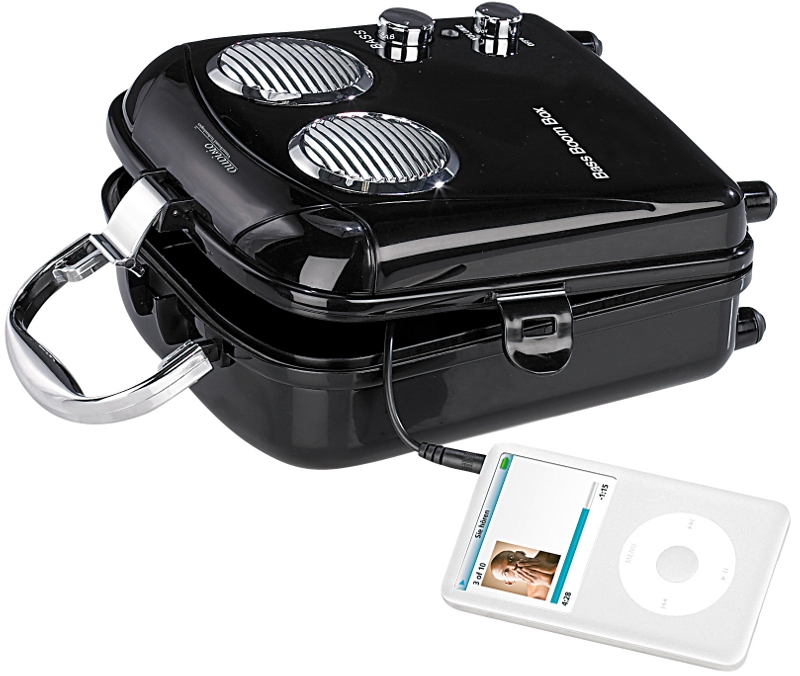 Über Geschmack lässt sich bekanntlich streiten. Praktisch ist die Bass-Box II sicher bei Strandausflügen, zumal iPod & Co geschützt im Innenraum liegen. Und wer sich mit dem Design so überhaupt nicht anfreunden kann, der wirft halt ein Handtuch drüber. Pearl.de bietet das Gerät zur Zeit für 14,90 Euro an.