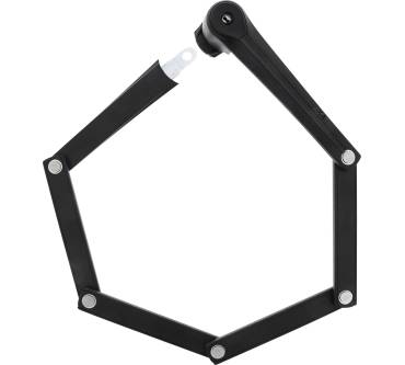 Mit 100 Zentimetern Länge sichert das Axa Fold Pro 100 Fahrräder oder andere Gegenstände nicht nur an Fahrradständern, sondern auch an Bäumen oder Laternenpfählen. Es handelt sich hierbei um ein modernes Faltschloss, das bei Nichtgebrauch kompakt zusammengefaltet und flexibel verstaut werden kann. Dies kann auch in der mitgelieferten Rahmenhalterung geschehen. Die einzelnen Glieder des Schlosses bestehen aus Hartstahl und sind zum Schutz gegen Kratzer am Rahmen mit einer Ummantelung aus Kunststoff versehen. Zum Verschließen werden zwei Schlüssel mitgeliefert. Eine Schlüsselnachbestellung bei Verlust ist möglich. In Tests schneidet das Faltschloss in puncto Sicherheit leider nur befriedigend ab. Dafür überzeugt es die Tester durch seine Korrosionsbeständigkeit.