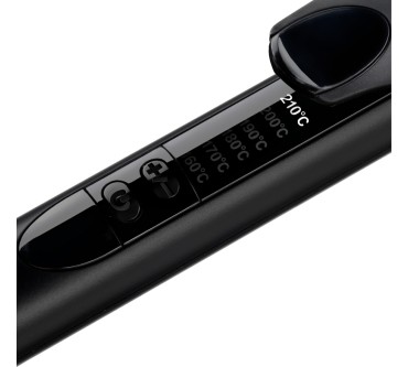 Der Lockenstab mit Klammer und 25 Millimetern Breite eignet sich zur Gestaltung sprungvoller Locken für sämtliche Haartypen. Insbesondere wenn Sie lange Haare haben, profitieren Sie von dem extra langen Stab. Den Temperaturbereich können Sie digital über sechs Stufen von 160 bis 210 Grad Celsius einstellen und somit individuell an Ihre Haarstruktur anpassen. Die Bedienung ist einfach gehalten, wie Anwenderinnen bestätigen. Dank der Klammer werden Ihre Haare sicher fixiert und lassen sich leicht um den Lockenstab wickeln. Die Quarz-Keramik-Beschichtung schont Ihre Haarstruktur, sie reduziert effektiv Hitzeschäden und statische Aufladung der Haare. Das spezielle Heizsystem sorgt für eine gleichmäßige und konstante Wärmeverteilung. Lockenergebnisse gelingen laut Rezensionen zügig und gut. Lediglich die Haltedauer der Locken könnte im Vergleich zu anderen Modellen etwas länger ausfallen. Das 2,5 Meter lange Kabel gewährt einen ausreichenden Aktionsradius, eine Hitzeschutzmatte und eine Abschaltautomatik unterstützen die Sicherheit.