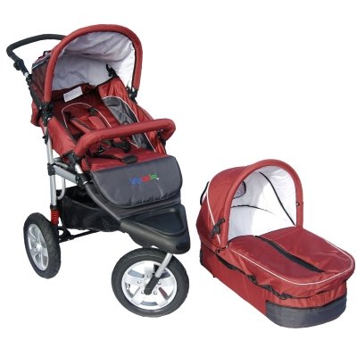 Der MovieStar zählt zwar nicht zu den echten Joggern, die sich federleicht beim Traben über Stock und Stein fast von selbst vor sich herschieben lassen. Trotz seiner gefederten Luftreifen scheint er eher als Gefährt für die Stadt gebaut zu sein. Dafür sorgt schon seine Wendigkeit mit dem 360 Grad schwenkbaren Vorderrad, der große Einkaufskorb und sein im Vergleich zu echten Babyjoggern relativ geringer Radstand, der selbst den Discounter-Slalom halbwegs gut bewältigen dürfte. Trotzdem eignet er sich gut für sportliche Eltern, die häufig unterwegs sind und einen Kinderwagen suchen, der sich den urbanen Erfordernissen ebenso anpasst wie Bedingungen im Gelände, holprigen Wald- oder Feldwegen oder sogar an schneebedecktes Terrain. Die Luftreifen schlucken so manche Bodenunebenheit weg, die Feststellbremse für beide Hinterräder bürgt für Sicherheit im Großstadtverkehr ebenso wie in bergigen Gegenden. Ein gepolsterter Fünfpunktgurt, eine dreifach verstellbare Rückenlehne sowie ein großes und faltbares Sonnendach mit Sichtfenster sorgen für Komfort, der abnehmbare Sicherheitsbügel für einfaches Platzieren des Nachwuchses im Sitz. Weiteres Plus: Im Lieferumfang enthalten sind Regenverdeck, Babytrage und Wintersack.