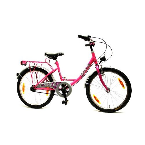 Das Follow Me besitzt Laufräder mit einer Höhe von 20 Fuß und einer Rahmenhöhe von 31,5 cm. Seine pinke Farbe lässt Mädchen-Herzen höher schlagen. Es ist mit Aluminum-Felgen ausgerüstet und die dynamo-betriebene Beleuchtung mit Standrücklicht ist von der StVZO zugelassen. Selbstverständlich sind auch Reflektoren und Glocke am Rad angebracht.