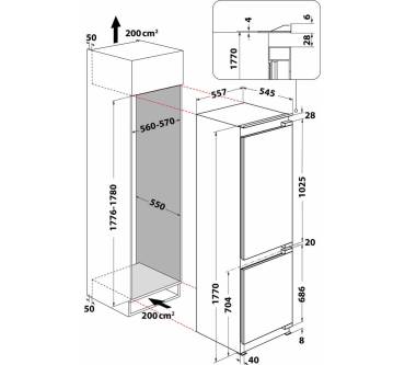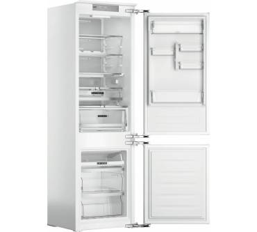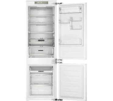 Die Bauknecht-Kühl-Gefrierkombination KGITN 18F4 M passt mit 182 Liter Kühl- und 68 Liter Gefriervolumen optimal in Drei- bis Vier-Personenhaushalte. Zwei spezielle Frischezonen sollen die Haltbarkeit von Obst und Gemüse sowie Fleisch und Fisch verlängern. Das gelingt unter anderem durch niedrigere Temperaturen in diesem Bereich. Dort sowie im weiteren Innenraum herrscht eine gleichmäßige und stabile Kälte. Dafür sorgt laut Hersteller ein sogenanntes Foodcare-System, bei dem es sich vermutlich um meine Umluftkühlung handelt. Diese verteilt die kühle Luft zuverlässig. Dank Abtauautomatik bleiben Kühl- und Gefrierraum stets eisfrei. Auch die technischen Daten sind solide. Insbesondere punktet das Gerät durch ein hohes Gefriervermögen von satten sieben Kilogramm innerhalb 24 Stunden. Die Geräuschentwicklung liegt bei flüsterleisen 34 Dezibel. In Sachen Energieeffizienz liefert die Kühlkombi noch gute Werte: Für das Volumen sind 143 kWh pro Jahr in Ordnung. Das gilt auch für den Preis: Für rund 950 Euro geht das Gerät in Ihren Besitz über.