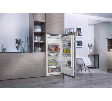 Der Kühlschrank mit Gefrierfach von Bauknecht ist eine Option für kleine Haushalte mit überschaubarem Kühlbedarf. Neben den etwa 170 Liter Volumen des Kühlteils stehen Ihnen zusätzlich knapp 20 Liter Volumen zum Einfrieren verderblicher Lebensmittel zur Verfügung. Der Energieverbrauch ist mit 118 Kilowattstunden pro Jahr gering und verschafft dem Bauknecht einen Platz in der höchsten Energieeffizienzklasse A+++. Weniger überzeugend sind die Leistungsdaten des Kühlschranks. Die Lagerzeit bei Störungen fällt mit 12 Stunden ebenso bescheiden aus wie die Gefrierleistung mit nur 2 Kilogramm pro Tag. Das Gefrierfach muss bei Bedarf manuell abgetaut werden. Gesteuert wird der Bauknecht über ein digitales Bedienfeld mit Display.