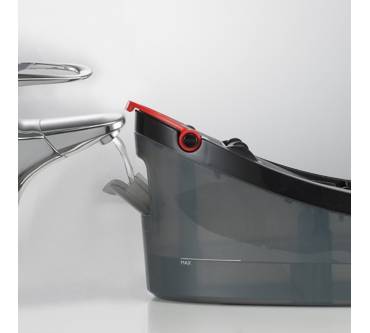 Dampfbügeleisen haben normalerweise ein großes Manko: Ihr Wassertank reicht gerade einmal für etwa eine halbe Stunde Bügeln aus – wenn überhaupt. Bei XL-Bergen an Wäsche muss das Bügeln daher öfters zum Nachtanken unterbrochen werden. Genau hier setzt das Beem an. Zum Betanken muss das Eisen lediglich auf der Nachfüllstation abgesetzt werden, über eine Pumpe füllt sich der Wassertank dann buchstäblich „automatisch“ wieder auf. Der Tank des Eisens fasst nur 250 Millilter Wasser, der große Tank der Station dagegen 2,05 Liter. Die Zeit zum unterbrechungsfreien Bügeln verlängert sich also durch das üppige Reservoir ungemein.