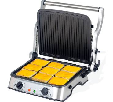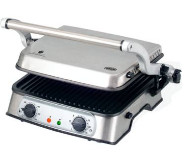 „... Er grillt von beiden Seiten gleichzeitig und ist dank der Abstands-Arretierung höhenverstellbar. So lassen sich die Grillplatten perfekt an jedes Grillgut anpassen. ...“