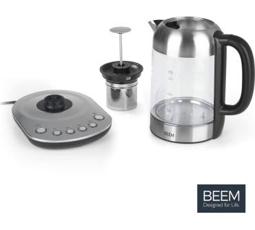 Der Teatime II von Beem hat mit 1,7 Liter Fassungsvermögen genügend Volumen für mehrere Personen und hält die Temperatur bis zu einer Stunde. Letztere können Sie individuell auf die verwendete Teesorte abstimmen. Da Spektrum geht von 70 Grad für beispielsweise weißen Tee bis zur passenden Schwarzteeeinstellung von 100 Grad. Sie können das Gerät auch als klassischen Wasserkocher einsetzen, allerdings lässt sich das Teesieb nicht entfernen und wird mitgekocht. Das bemängeln einige Rezensenten, die den Beem aber zu über zwei Drittel positiv bewerten. Attraktiv ist die LED-Beleuchtung, die vor allem abends für ein ansprechendes Ambiente sorgt. Preislich gehört das Modell zu den budgetfreundlichen Exemplaren und ist im Hinblick auf die Ausstattung eine Empfehlung wert.
