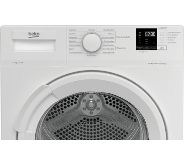 Mit einer Tiefe von nur 50,8 cm kommt der DHC742GXS von Beko deutlich schlanker als einige Kollegen daher. Haben Sie nur wenig Platz in Badezimmer oder Waschküche, ist das Modell einen näheren Blick wert. Bei 7 kg Fassungsvermögen reicht der Wärmepumpentrockner für kleinere Familien gut aus und bietet stolze 15 Programme zur Auswahl. Unter anderem können Sie spezielle Einstellungen für Outdoorwäsche oder Daunen wählen bzw. mit den Programmen Express und Mix/Mini Zeit sparen. Neben den Optionen schranktrocken, bügeltrocken oder trocken steht Ihnen ein Knitterschutz zur Verfügung. Dieser verhindert nach Ende des Durchgangs Faltenbildung, so Sie die Wäsche nicht gleich aus dem Trockner nehmen können. Die Endezeit ist aber voraus wählbar und wird am gut lesbaren LED-Display angezeigt. Haben Sie ein höheres Wäscheaufkommen, wäre der 9-kg Markenkollege eine Alternative.