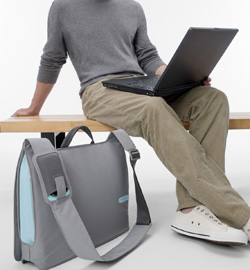 Endlich keine in der Ecke, auf dem Boden, auf den Tischen herumliegenden Laptop-Taschen mehr. Denn die Ceylon Messenger Bag (auch Kuriertasche genannt) von Belkin beweist als – meines Wissens jedenfalls – erste und einzige Notebooktasche Standfestigkeit und lässt sich genau so lässig wie ein Aktenkoffer einfach auf dem Boden abstellen.