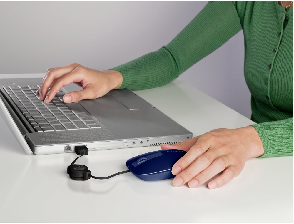 Die Comfort Mouse F5L051 von Belkin zieht auf Wunsch oder Befehl ihres Besitzer den Schwanz, sprich ihr Kabel ein. Um die Maus daher von ihren beiden Kolleginnen aus der Comfort-Serie, der Bluetooth-Version sowie der kabellosen Version, besser unterscheiden zu können, führt sie in ihrem Produktnamen unübersehbar die zusätzliche Bezeichnung „Retractable“. Die Funktion ist selbstredend sehr praktisch, verhindert sie doch lästiges Kabelgeknäuel auf dem Schreibtisch. Besonders unterwegs jedoch, zum Beispiel unter beengten Verhältnissen im Zug oder Flugzeug, ist die kleine Spule, mit der sich die Länge des Mauskabels flexibel variieren lässt, ein wahrer Segen.