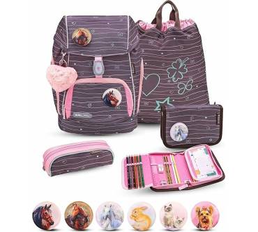 Sorglos-Set für den Schulstart. Ideal für kleinere Schulkinder. Mit verstellbarem Rücken und praktischen Extras. Magnetverschluss und leichte Handhabung überzeugen. Der Tragekomfort ist top, allerdings berichten Eltern von einer leichten Instabilität und frühem Verschleiß der Reißverschlüsse.