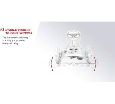 Das leise Fahrgeräusch ist ein ganz eigener Vorteil, man fragt sich, warum nicht alle Gokart-Hersteller längt darauf gekommen sind. Die Bodenhaftung ist ein weiterer: Dank der Pendelachse – eine elegant zu nennende Konstruktion mit unabhängig geführten und pendelnden Vorderrädern – bleibt Buddy Lua auch auf Holperstrecken handlich. Für manche Eltern ist die Verstellfunktion bei Sitz und Lenkrad fast der größte Vorteil, sie lassen den Nachwuchs-Rennfahrern Reserven zum Wachsen. Erst bei ca. 130 cm Körpergröße und 50 kg Körpergewicht ist Schluss. Trotz der ambitionierten Preisgestaltung steckte Berg in seinen Buddy Lua allerdings nicht alles, was technisch möglich ist. So fehlt eine Handbremse für Extra-Bremskraft in Bestzeit und beim Berghochfahren. Dennoch bleibt ein positiver Eindruck. Klare Kaufempfehlung, ein tolles Weihnachtsgeschenk!