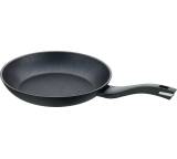 Diese Schmorpfanne von Berndes können Sie auf allen Herdarten einsetzen und bis zu 140 Grad Temperatur ins Backrohr stellen. Der Boden ist 3-fach versiegelt und hat eine gute und beständige Antihafteigenschaft. Selbst wenn Sie mit Metallbesteck arbeiten, hält die Beschichtung. Die Berndes braucht relativ lange, um auf Betriebstemperatur zu kommen. Danach hält sie die Wärme aber gut und verteilt sie auch gleichmäßig. Durch den relativ weichen ergonomischen Stiel halten Sie die Pfanne bequem und sicher. In einem aktuellen Test erreicht die Berndes den 4. Platz und wird befriedigend bewertet. Die bisherigen Nutzerberichte sind zu rund zwei Drittel sehr gut. Relativ häufig wird aber die Lieferung mit Dellen moniert. Das sollte in diesem Preissegment nicht vorkommen.