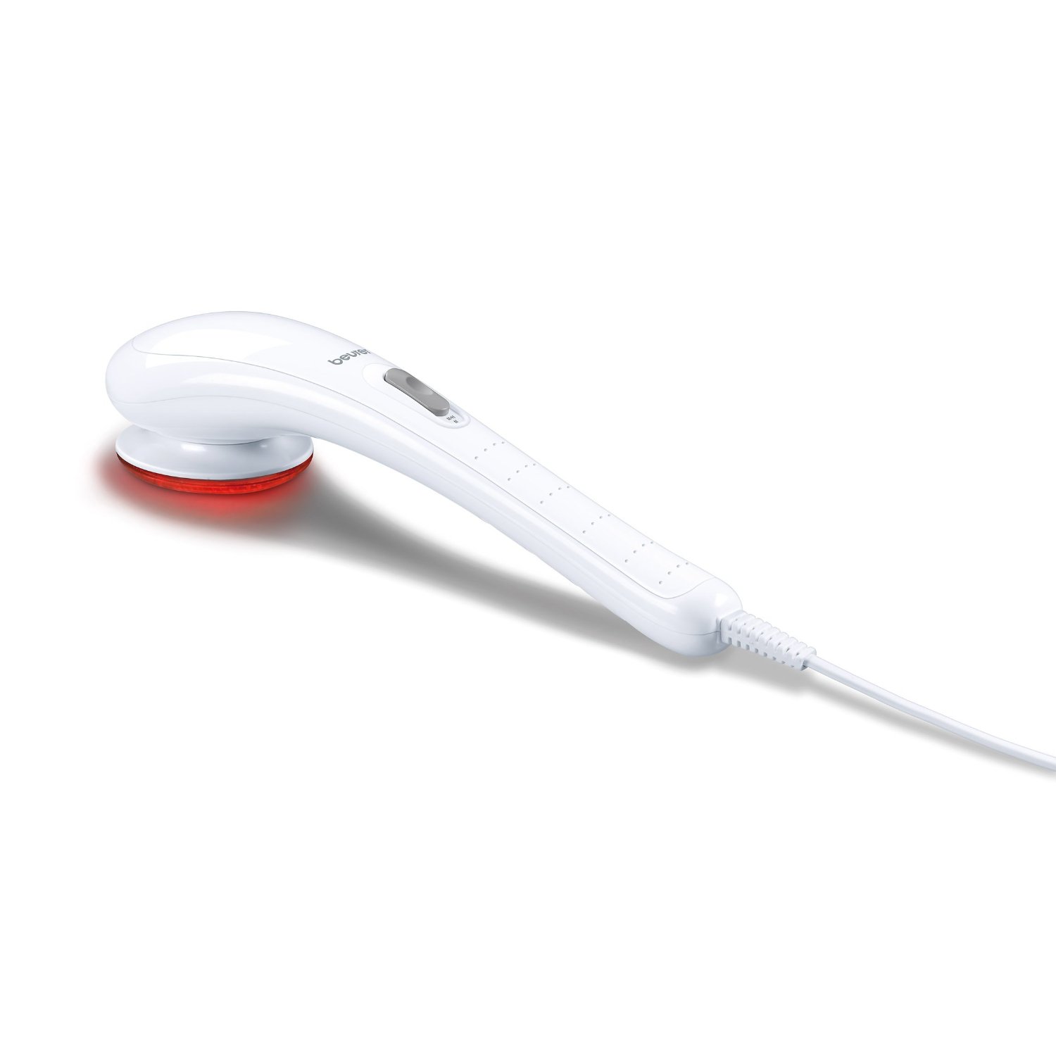 Die Grundfunktion des Beurer ist die Vibrationsmassage. Sie soll leichte Verspannungen lösen und zudem die Durchblutung fördern. Die Massage ist ideal nach einem langen Arbeitstag am Schreibtisch oder nach dem Sport, als Therapiegerät bei chronischen schmerzen sollte das Beurer jedoch nicht eingesetzt werden – letztendlich handelt es sich um ein Wellnessprodukt. Die Massage selbst fällt ziemlich sanft aus, ein Seitenblick auf vergleichbare Modelle des Herstellers zeigt, dass sie für einige sogar zu sanft sein könnte. Die Erwartungen sollten daher im Vorfeld nicht allzu hoch geschraubt werden. Dasselbe gilt für die zuschaltbare Wärmefunktion mittels Infrarot. Auch sie „wärmt“ nicht unbedingt, sondern soll primär der Massagefunktion eine Art Tiefenwirkung bescheren. Die ersten Kunden beurteilen sie als angenehm, bei den meisten Handmassagegeräten gehört diese Funktion daher mittlerweile zum Standard.