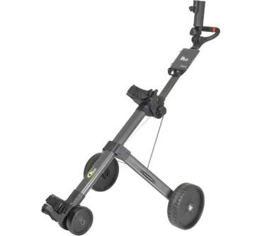 „Das Design des Big Max Pro ist einzigartig. Der Lithium-Polymer-Akku (6,8 AH / 24 V) des 13 kg schweren Trolleys ist für 36 Löcher ausgelegt und verschwindet vollständig im Gestänge. Sollte der Akku einmal ‚schlappmachen‘, lässt sich der Pro mit ausgeschaltetem Motor leicht wie ein Schiebetrolley bewegen. ...“
