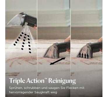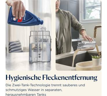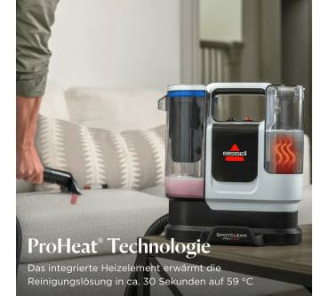 Der Bissell SpotClean ProHeat Advanced ist ein effektiver Fleckenentferner, der sich besonders für Teppiche, Polster und Autositze eignet. Mit seinem leistungsstarken 1125W-Motor und dem Triple-Cleaning-System, das Wasser, Reinigungslösung und starke Saugkraft kombiniert, entfernt er selbst hartnäckige Flecken wie eingetrocknete Verschmutzungen. Besonders hervorzuheben ist die Heatwave-Technologie, die das Wasser während der Reinigung warm hält und so die Fleckenentfernung verbessert.