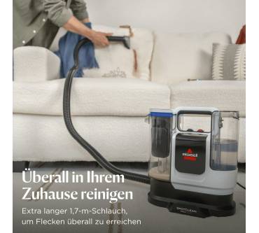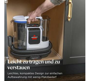 Das Gerät ist kompakt und leicht, was es einfach zu verstauen und zu transportieren macht. Die Handhabung ist unkompliziert, der Wassertank lässt sich einfach befüllen und reinigen. Das lange Kabel ermöglicht eine große Reichweite, was die Nutzung auch bei Autositzen oder in schwer erreichbaren Bereichen erleichtert. Zwar ist der SpotClean nicht besonders leise, doch für die Leistung ist das Geräusch akzeptabel. Die Reinigung des Geräts selbst ist einfach, erfordert jedoch etwas Sorgfalt bei der Pflege des Schlauchs und der Aufsätze.