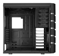 Die in den reflektierenden Grundfarben Schwarz und Weiß erhältlichen BitFenix Colossus werden durch LED-Linien rund um das Gehäuse in Rot oder Blau beleuchtet und machen richtig was her. Wenn man als Schrauber doch ein wenig mehr in den PC stecken will, werden beim Colossus keine Grenzen gesetzt. Ob Mini-ITX oder E-ATX, jedes Mainboard-Maß passt hier. Insgesamt 8 PCI-Slots, die ohne Werkzeug arretierbar sind, lassen auch ein 4-Way-SLI zu. Insgesamt 7 Festplatten finden in dem Käfig Platz und 5 weitere große Einschübe stehen für weitere Laufwerke zur Verfügung. Serienmäßig ist ein 230er Frontlüfter und ein gleichgroßen Toplüfter installiert – optional können im Boden ein 120/140er und rückwärtig ein 140er Lüfter eingebaut werden. Im Top verbirgt sich das I/O-Panel mit zwei USB 3.0-, zwei USB 2.0-, einem eSATA- und dem Audio-Port.