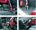 Klappt man den Saugrüssel komplett um, lässt sich der dadurch auf ein handliches Maß verkleinerte Handstaubsauger leicht im Kofferraum in der mitgelieferten (Trage-) Tasche verstauen, damit er immer zur Hand ist, wenn er gerade einmal dringend gebraucht wird – ohne dass deswegen extra die Tankstelle angefahren oder der Hausstaubsauger umständlich in die Garage verfrachtet werden muss.