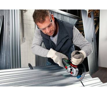 Der Akku-Winkelschleifer von Bosch unterstützt Sie beim Ablängen von Metallrohren, Zuschneiden von Fliesen und bei Arbeiten an Beton oder Mauerwerk. Die Drehzahl variieren Sie in dem Bereich bis 12.000 Umdrehungen pro Minute materialgerecht. Die hohen Drehzahlen nutzen Sie für einen zügigen Arbeitsfortschritt, die geringeren für feinere Arbeiten wie etwa dem Bürsten von Metallflächen. Den Scheibenwechsel erledigen Sie werkzeuglos mit nur wenigen Handgriffen. Dafür, dass Ihnen der Bosch sicher in der Hand liegt, sollen die Softgrip-Einlagen im Griffbereich, die Schutzhaube, der Sanftanlauf und der Wiederanlaufschutz nach Stromunterbrechung sorgen. Eine zusätzliche Schutzhaube, die ein Plus an Sicherheit während Trennarbeiten gewährleisten soll, ist im Lieferumfang enthalten. Ebenfalls mit dabei ist ein vibrationsgedämpfter Zusatzgriff, den Sie beidseitig des Getriebekopfes montieren können.