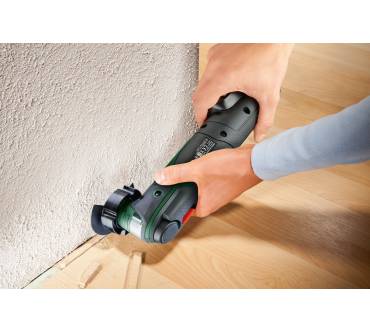 Stärken und SchwächenBosch stellt mit dem Akku-Multitool ein Mitglied seiner neuen 18 Volt-Serie vor. Insgesamt können 20 Heimwerker- und Gartengeräte mit ein und demselben Akkusystem betrieben werden. Die Oszillationszahl kann materialabhängig zwischen 10.000 und 20.000 Oszillationen pro Minute gewählt werden, der Oszillationswinkel beträgt 2,8 Grad. Damit ist ein breites Spektrum möglicher Anwendungen abgedeckt. Die Drehzahl wird über eine Konstantelektronik unter variierenden Lastbedingungen konstant gehalten. Der Zubehörwechsel soll sich dank eines Quick-Systems denkbar einfach gestalten und mit wenigen Handgriffen erledigt sein. Insgesamt stehen 32 Zubehöre für das Sägen, Schleifen und andere Renovierungsarbeiten zur Verfügung. Nicht ganz gelungen ist die Integration des Akkus, der die Variation der Griffpositionen deutlich einschränkt. Im Lieferumfang enthalten ist ein vibrationsgedämpfter Zusatzhandgriff für den beidhändigen Einsatz. Darüber hinaus sind eine Delta-Schleifplatte, etwas Schleifpapier und zwei Sägeblätter mit dabei. Softgrip-Einlangen im Griffbereich sollen für einen sicheren Halt während der Arbeit sorgen. Das Gerät ist mit 1,4 Kilogramm inklusive Akku nicht schwer.