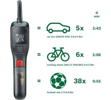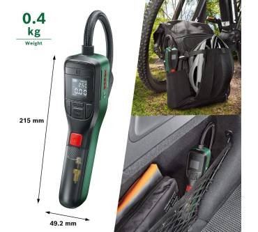 „Die Bosch EasyPump ist ein prima Helfer für alle, die den Familien-Fuhrpark unter Druck halten müssen. Bei kleinvolumigen Dingen wie Fahrrädern aller Art, Segway, Bollerwagen, Schubkarren und ähnlichem sorgt die Pumpe dank Voreinstellung für optimalen und gleichmäßigen Luftdruck. Ganz ohne schweißtreibende Handarbeit.“