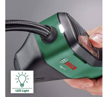 Der Mini-Kompressor von Bosch nimmt Ihnen das lästige Pumpen ab, wenn an einem Ihrer Fahrzeuge der Luftdruck zu gering ist. Bei einer Länge von nur 215 Millimeter ist die Pumpe auch eine Option für Radtouren oder für das Handschuhfach. Bei einem Maximaldruck von 10,3 bar meistert der Kompressor auch anspruchsvolle Aufgaben wie das Aufpumpen von Rennrad-Reifen. Wahlweise können Sie den gewünschten Zielwert einstellen oder die Pumpe manuell betreiben. Der aktuelle Luftdruck wird ebenfalls angezeigt. Praktisch ist die integrierte LED-Leuchte, mit deren Hilfe Sie auch bei Dunkelheit hantieren können. Bei der angezeigten Druck-Einheit haben Sie die Wahl zwischen bar, PSI und kPa. Mit im Lieferumfang dabei und am Gerät untergebracht sind mehrere Adapter für unterschiedliche Ventil-Typen. Geladen wird der Akku-Kompressor über einen USB-Port.