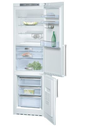 Die Kühl-Gefrier-Kombination KGF39P01 von Bosch hat nicht, wie gewohnt, zwei Türen, um Kühl- und Gefrierbereich voneinander zu trenne, sondern ganze drei Türen. Um Lebensmittel noch besser und länger aufbewahren zu können, hat das Gerät eine Vitafresh-Zone, in der ein besonderes Klima herrscht. Temperaturen nahe 0 Grad Celsius halten frische Lebensmittel frisch. Unterteilt ist die Zone in zwei Bereiche: den trockenen Bereich, in dem zum Beispiel Fleisch und Fisch aufbewahrt werden und den feuchten Bereich, in dem, bei einer Luftfeuchtigkeit von 95 Prozent, Gemüse gut aufgehoben ist. Zusätzlich ist der Kühlbereich mit einer AntiBacteria-Schicht versehen, die die Vermehrung von Bakterien und Keimen verhindert.