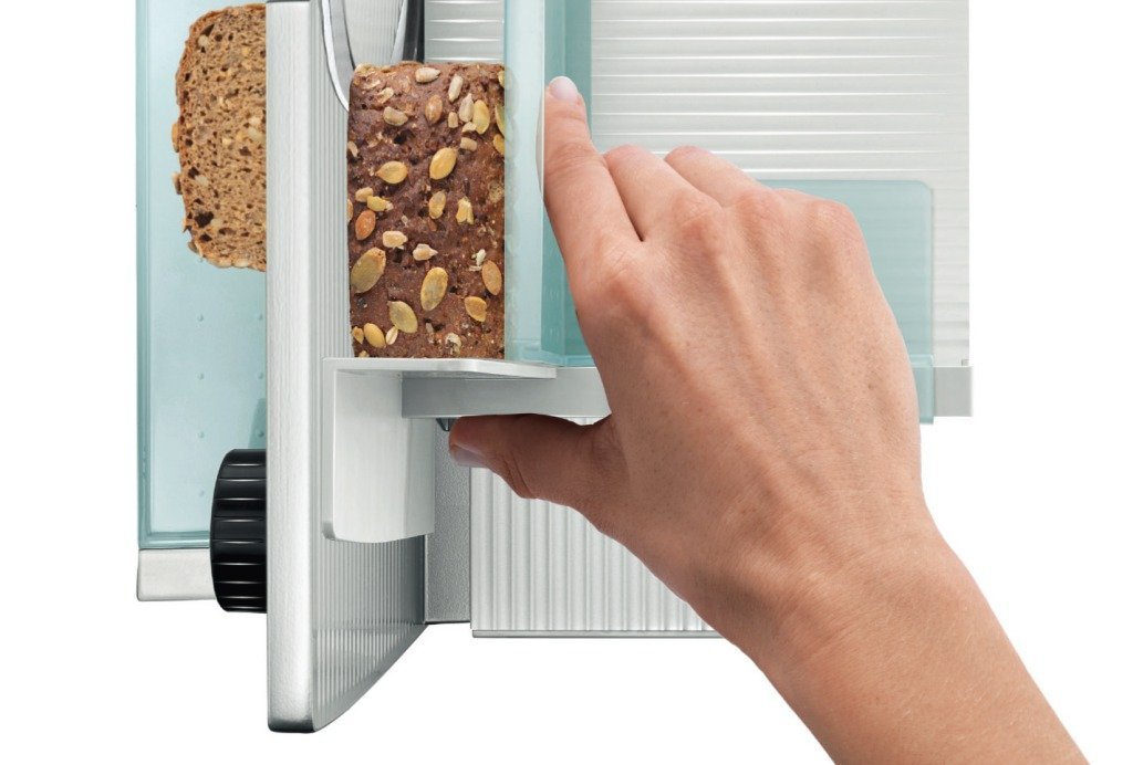 Ausstattung, Handhabung wie auch Schnittleistung – beim Allesschneider von Bosch scheint alles zu passen. Sogar die Reinigung des Geräts ist nach wenigen Handgriffen erledigt, denn Schlitten, Messer und Anschlagplatte lassen sich leicht entfernen. Einige Krümel können sich zwar in Ecken oder Ritzen verbergen, doch damit haben fast alle Modelle zu kämpfen. Kurzum: Wer bei der Anschaffung eines Allesschneiders auf der sicheren Seite sein möchte, liegt bei dem rund 135 EUR (Amazon) teuren Modell von Bosch mit einer hohen Wahrscheinlichkeit goldrichtig.
