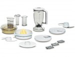 Die MCM4200 ist die am besten ausgestattete Kompaktküchenmaschine des deutschen Herstellers Bosch. Dank diverser Zubehöre ersetzt sie zum Beispiel einen separaten Mixer und eine Saftpresse, kann aber mit Gewinn auch für die Essenszubereitung sowie für fast alle Teige eingesetzt werden. Grandios: Die rein rechnerisch zur Verfügung stehenden 40 Funktionen sind auf einer Standfläche von geradezu lächerlich kleinen 24 mal 21,5 Zentimeter untergebracht.