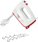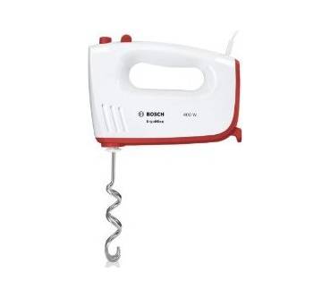 Der MFQ36300 bildet das Schlusslicht der Fünflinge, mit denen der renommierte deutsche Hersteller Bosch sein Sortiment an Handrührern im Herbst 2012 aufgefüllt hat. Das Gerät hat im Unterschied zu seinen vier Kollegen eine Leistungsaufnahme von lediglich 400 statt 450 Watt, dürfte aber in puncto Motorkraft trotzdem potent genug sein, um sich sowohl mit leichten wie mit schweren Teigen erfolgreich herumschlagen zu können.