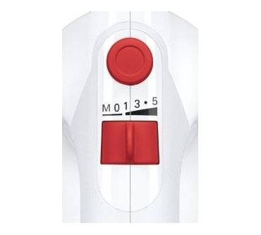 Der Handrührer setzt sich mit seinen 400 Watt deutlich von den Low-Budget-Geräten ab, die sich in der Regel mit Motorleistungen von 200 oder 300 Watt begnügen müssen und bei schweren Teigen oder großen Teigmengen entsprechend häufig in die Bredouille kommen – insbesondere Knetteige bringen etliche dieser Modelle schnell an die Grenze ihrer Leistungsfähigkeit. Außerdem kann der Benutzer beim Bosch aus insgesamt fünf Geschwindigkeitsstufen sowie einer zusätzlichen Turbo-/Momentstufe auswählen. Bei den Low-Budget-Kollegen stehen meist nur zwei oder drei zur Verfügung. Dies bedeutet natürlich, dass sich die Motorkraft um einiges feinfühliger regulieren und damit optimaler auf die anstehenden Rühr- oder Knetaufgaben ausrichten lässt.Besseres Handling