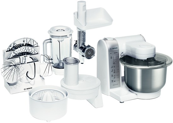 Auch die MUM 4780 kann mit einer breiten Zubehörpalettte punkten – „auch“ deshalb, weil erst kürzlich ihre kleinere Schwester MUM 4655 der Stiftung Warentest unter anderem genau deswegen positiv aufgefallen war. Im Unterschied zur MUM 4655 kann die 4780 sogar noch mit einer zusätzlichen Zitruspresse aufwarten, die einem den Kauf versüßt beziehungsweise den eines weiteren separaten Einzelgerätes erspart – und dies bei einem Preisaufschlag gegenüber der kleinen Schwester von knapp 30 Euro.