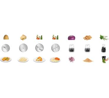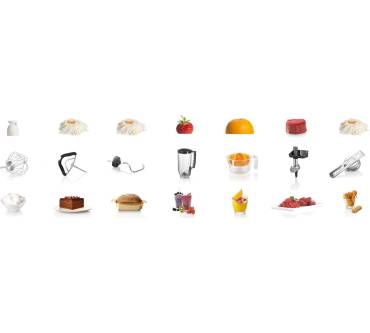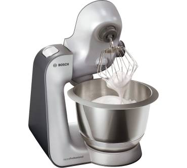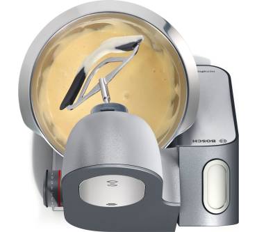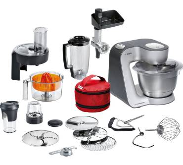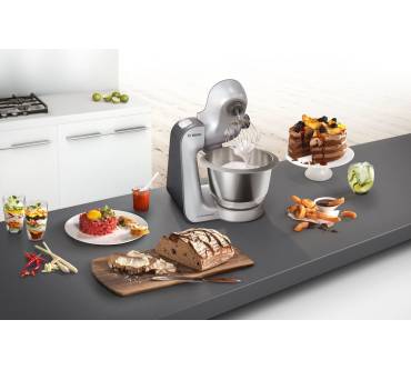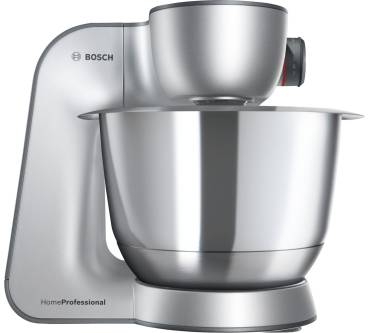 Bosch liefert zur Küchenmaschine MUM59S81DE ein umfangreiches Zubehörpaket, darunter ein Patesserie-Set für die Zubereitung von Kuchen und Torten, Scheiben für das Zerkleinern von Kartoffeln für Puffer sowie einen Fleischwolf. Das Gerät arbeitet in sieben Stufen mit bis zu 1.000 Watt Leistung. So lassen sich auch harte Lebensmittel und schwere Teige einfach verarbeiten. Das Planetenrührwerk sorgt für eine gleichmäßige Verteilung der Zutaten in der mit 3,9 Liter großzügig bemessenen Edelstahl-Schüssel. Laut Hersteller zahlen Sie derzeit rund 530 Euro für die Profi-Küchenmaschine. Angesichts guter Leistung und einer zu erwartenden hochwertigen Verarbeitung ist das angemessen. Ebenfalls gute Werte zum geringeren Preis liefert die WMF Profi Plus Küchenmaschine.