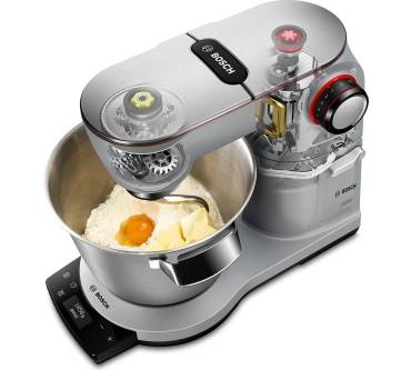 Die Bosch OptiMUM MUM9AX5S00 bietet mit 1.500 Watt viel Leistung und eine großzügige Kapazität von 5,5 Liter Fassungsvermögen. Mehrpersonenhaushalte, Familienfeiern und Kindergeburtstage können damit zuverlässig versorgt werden. Ob Kuchen, Sahne, Desserts oder auch Pizza und Vollkornbrot, der Eigenherstellung sind keine Grenzen gesetzt. Schwere und große Teigmassen werden mit dem Gerät gut bewältigt. Das klassische Zubehör wie Rührschüssel, Rührbesen, Knethaken und Schlagbesen gehört zur Ausstattung, weitere Anbauteile wie Mixeraufsätze oder das Multi-Zerkleinerer Set TastyMoments MUZ9TM1 können optional ergänzt werden.