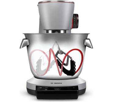 Das solide Aluminium-Druckguss-Gehäuse ist unempfindlich und gleichzeitig stilvoll. Die Zubehörteile sind farblich gekennzeichnet und lassen sich einfach montieren. Sie werden von der Maschine automatisch erkannt und die Geschwindigkeit entsprechend angepasst. Eine integrierte Waage ermöglicht das Wiegen von Zutaten direkt in der Schüssel, hier gibt es von Rezensent:innen etwas Kritik an der Zuverlässigkeit.Mithilfe der innovativen „SensorControl Plus“-Technologie wird automatisch die optimale Konsistenz für Hefeteig, Sahne und Eischnee kreiert, ohne dass Sie daneben stehen müssen oder Vorkenntnisse benötigen. Über einen integrierten Timer lassen sich zudem individuelle Rührzeiten einstellen. Sieben Geschwindigkeitsstufen und ein Momentschalter bieten ein breites Spektrum für verschiedenste Konsistenzen. Dank eines Sensors wird die Rührgeschwindigkeit auch bei zähen und großen Teigmengen konstant hochgehalten.