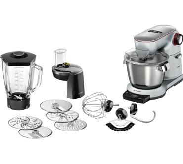Zur Küchenmaschine gehören ein Flexi-Rührbesen, ein Profischlagbesen, ein Knethaken, eine Edelstahlrührschüssel und ein Kunststoffdeckel. Die Aufsätze für das Rührwerk sind für alle Zwecke ausreichend, ob Sahne, Hefe- oder Rührteig. Der Deckel schließt nicht richtig ab, sodass es gerade bei zu viel Mehl eine staubige Angelegenheit werden kann. (Es gibt allerdings einen neuen Deckel, da meiner wirklich eine zu große Lücke hat, kann ich einen neuen bei Bosch beziehen.) Die Rührschüssel ist super, allerdings brauche ich eine zweite Schüssel. Daher habe ich mir eine Kunststoffschüssel zugelegt. Gerade wenn man Teig macht und dann soll man noch schnell Eischnee schlagen macht sich das bemerkbar. Sonst heißt es entweder per Hand schlagen oder Schüsselinhalt umfüllen, Schüssel reinigen, etc..