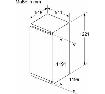Der Vollraumkühlschrank, das heißt, der Kühlschrank ohne Gefrierfach, passt in eine Nische Ihrer Einbauküche mit den Abmessungen 122,5 x 56 x 55 cm. Das Möbelpanel wird fest mit der Kühlschranktür verschraubt (Flachscharniermontage).