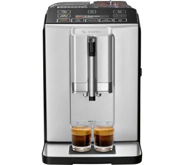 Bosch stellt mit dem Kaffeevollautomaten VeroCup 300 (Modell TIS30321RW) ein Modell für Einsteiger, Gelegenheitstrinker und kleine Haushalte vor. Der Wassertank fasst 1,4 Liter, das genügt für etwa fünf Kaffeebecher. Statt eines Milchtanks setzt der Hersteller auf das Aufschäumen direkt in der Tasse. Das erspart Ihnen zwar nicht die Reinigung, vereinfacht diese jedoch wesentlich, da keine Schläuche zum Einsatz kommen und „nur“ die Düse durchgespült werden muss. Die Kaffeeauswahl erfolgt über ein Touchdisplay und dürfte intuitiv verständlich sein. Im Inneren zerkleinert ein Keramikmahlwerk die Bohnen. Im Vergleich zu einem aus Stahl arbeitet es leiser und soll für optimales Aroma sorgen. Die Nutzer zeigen sich mit dem Kaffee und der Konsistenz sowie der Zubereitung des Milchschaums überwiegend zufrieden. Für um die 500 Euro zahlen Sie hier einen angemessenen Preis.