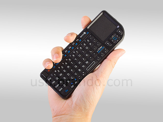 Doch trotz ihrer Mini-Maße steckt in der Rii eine ganze Menge an Technik. Direkt neben der kompletten, im Dunkeln auch hintergrundbeleuchteten Tastatur, die natürlich beim Surfen im Internet, Chatten oder Mailen sich als höchst nützlich erweisen dürfte, ist noch ein Touchpad angebracht, damit man auf das Sofa nicht auch noch eine Maus mitschleppen muss. Der Clou: Das Touchpad lässt sich – laut Brando als erstes Modell des gesamten Erdenrunds – sowohl in vertikaler als auch in horizontaler Richtung bedienen, sodass es keine Rolle spielt, wie die Rii in der Hand gehalten wird. Direkt unter dem Touchpad wiederum sitzen noch Richtungstasten in Form eines Steuerkreuzes – auch dies ist natürlich eine höchst willkommene Navigationshilfe –, und auf Mediaplayer-Tasten muss ebenfalls nicht verzichtet werden.