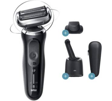 Braun präsentiert mit diesem Modell aus seinen Oberklasse-Series 7 einen schnittstarken Rasierer, der auch Ihren 3-Tage-Bart gut schafft. Der integrierte Sensor misst Ihre Bartdichte und passt die Motorleistung nach Bedarf an, sodass Sie zügig vorankommen. Durch den multiflexiblen Scherkopf erreichen Sie selbst die schwierigsten Stellen. Ein Präzisisionstrimmer ist dabei, muss aber extra angebracht werden. Das erledigen Sie mit dem Click-System zwar flugs, einige Nutzer wünschten sich hier aber doch ein ausklappbares Werkzeug. Punkten kann der 70-N7200cc mit seinem ausdauernden Akku: Bis zu 80 Minuten bzw. 3 Wochen rasieren Sie mit einer vollen Ladung. Die mitgelieferte Ladestation dient außerdem zur Reinigung und Pflege. Der elegante Braun liegt dank schmaler Form und gummiertem Griff gut in der Hand, selbst wenn Sie ihn unter der Dusche einsetzen.
