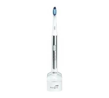 Das kleinste Modell der Serie, die Oral-B Pulsonic Slim ist, worauf der Produktname unmissverständlich hindeutet, extrem schlank und schmal ausgefallen – tatsächlich ist sie kaum dicker als eine gewöhnliche Handzahnbürste. Die Zeiten, in denen auf Reisen der Kulturbeutel durch eine elektrische Zahnbürste über die Maßen unangenehm ausgebeult wurde oder sich kaum schließen ließ, sind demnach vorbei. Der Pulsonic-Technik wird nachgesagt, beim Zähne putzen effektiv den Plaque durch vibrierende Borsten zu lösen und damit für ein besonders gründliches Putzergebnis zu sorgen. Zusätzlich reichen die Borsten tief in die Zahnzwischenräume hinein und entfernen somit den Plaque auch an manuell nur schwer zugänglichen Stellen. Das Borstenfeld selbst ist so geschnitten, dass es den Zahn förmlich umschließt, wodurch sich Verfärbungen leichter entfernen lassen sollen.